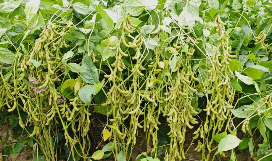 在肇庆市封开县大玉口南方大豆丰悦产业基地,连片种植的300多亩高产大豆品种华夏22,长势良好,丰收在望。该基地7月25日采用手推式播种机播种,行距50厘米,株距13厘米,2-3粒播种,大豆植株整齐,结荚饱满,丰产性良好,全生育期102天。